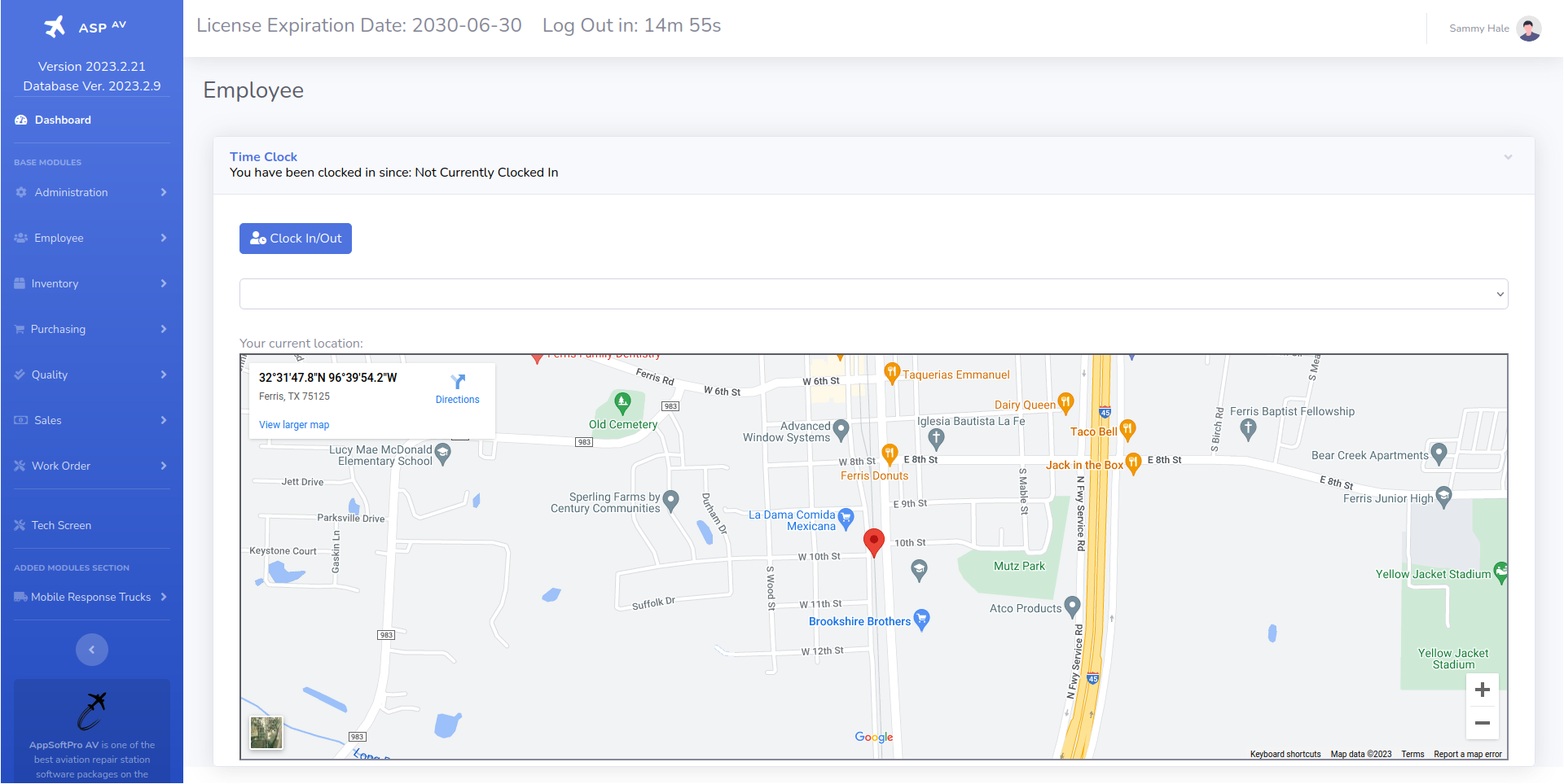 | Time Clock | Used by the employee to clock in or out and it also records the longitude and latitude at the time the employee clocks in or out. |